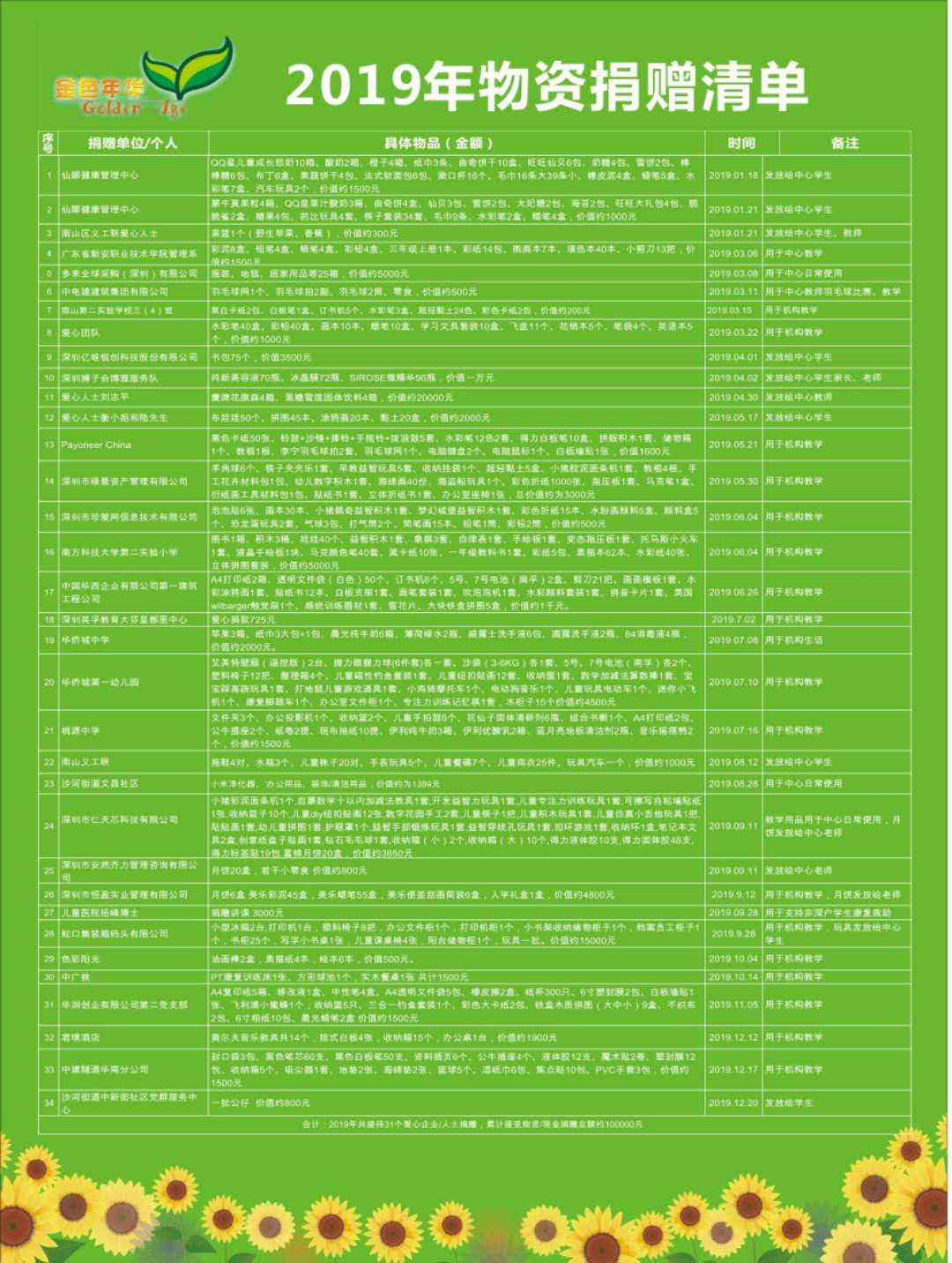 > 金色年华2019年物资捐赠清单